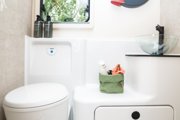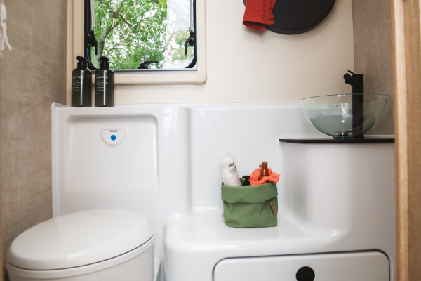 - Baie complet echipata cu chiuveta, WC ecologic si separat cabina dus