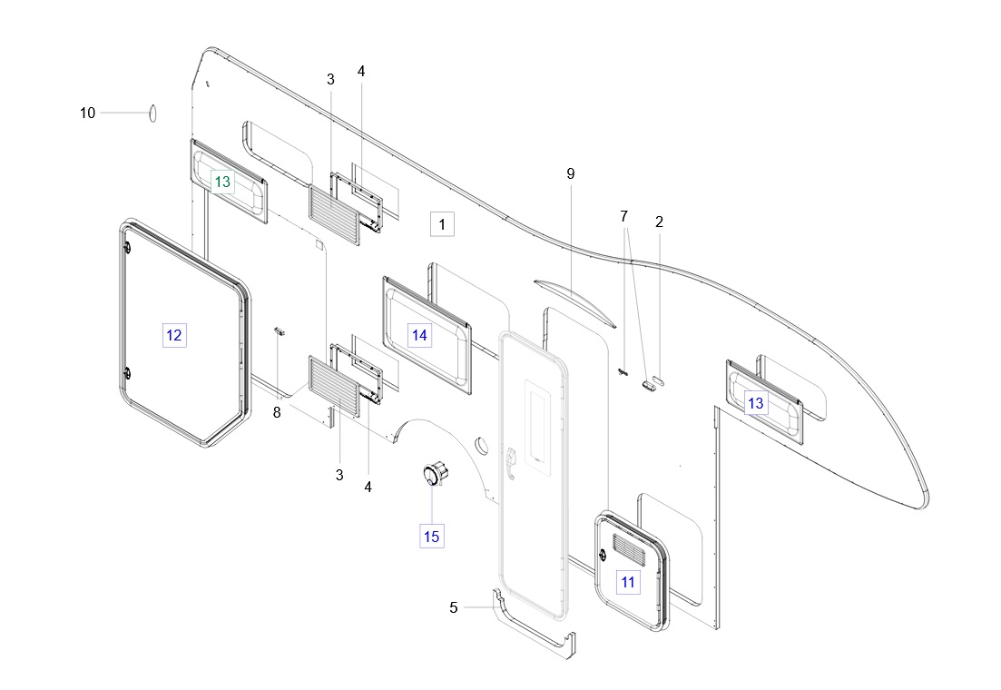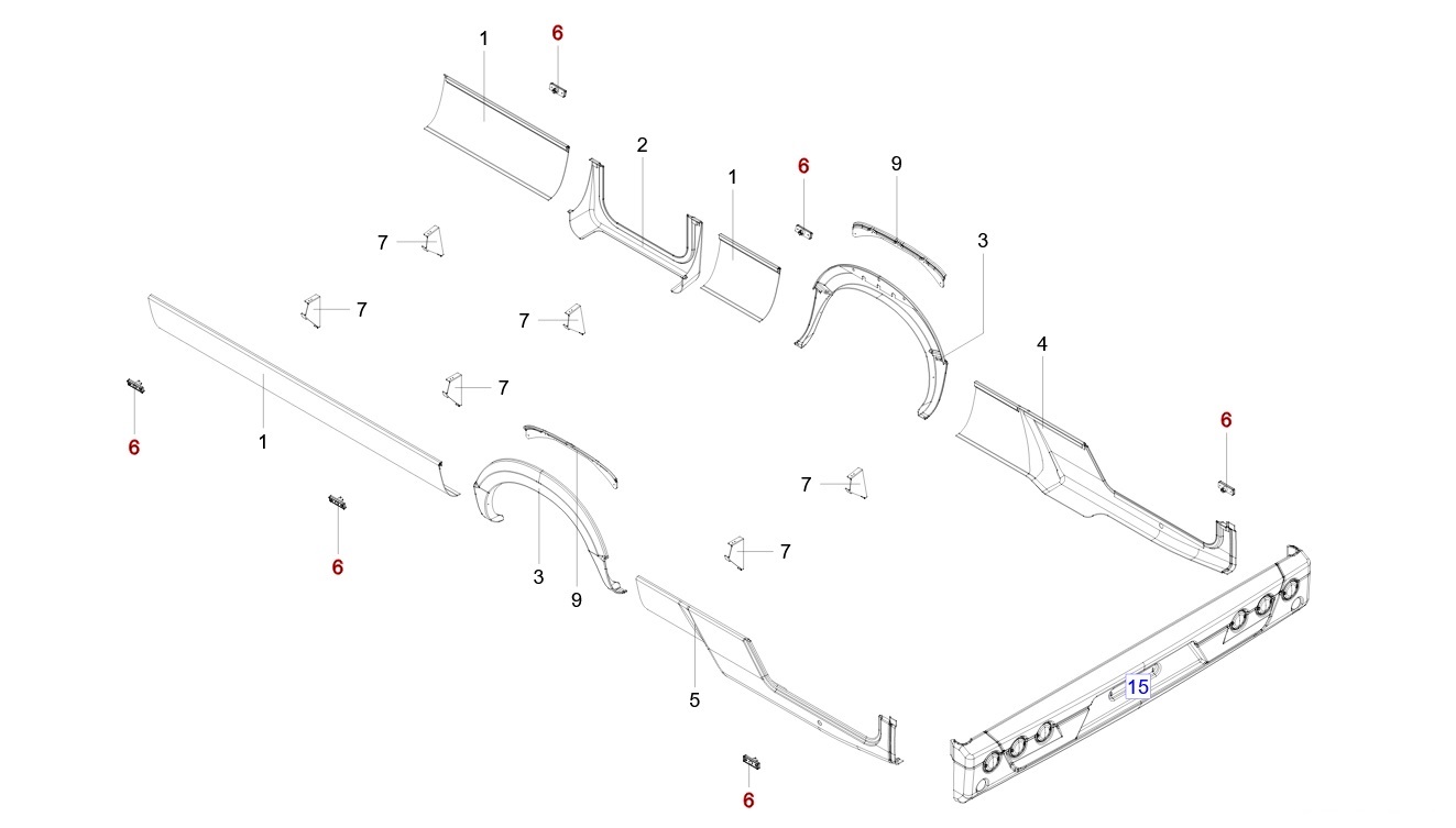 Structură & Exterior: Bară spate, colțare bară, profile PVC laterale, etc.